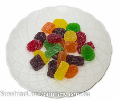 Ingredients: corn syrup, sugar, modified starch, citric acid, flavours, colours – 102, 110, 122, 129, 133. GLUTEN FREE