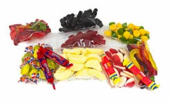 Ingredients:Licorice60%(molasses,wheat flour,glucose syrup-wheat,invert sugar,vegetable oil,emulsifier 471,flavours,colour 153,salt,preservative 202), Milk choc 30%(milk solids,cocoa butter,cocoa mass,sugar,emulsifier-322 soya,476,flavour,glazing agents 414,904) Milk solids 45%, Contains Sulphites. Made in Australia