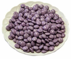 Chocolate Drops are oblate spheroids with a minor axis of about 5 mm (0.2 in) and a major axis of about 12 mm (0.5 in). They come in colours: red, yellow, green, blue, mauve, pink and white.
