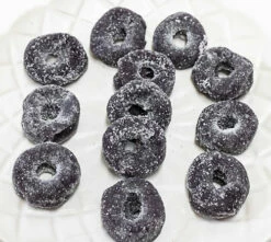 Ingredients – Sugar, Glucose, Flavour, Food Acid 330, Colours – 102, 110, 124, 133, 122.