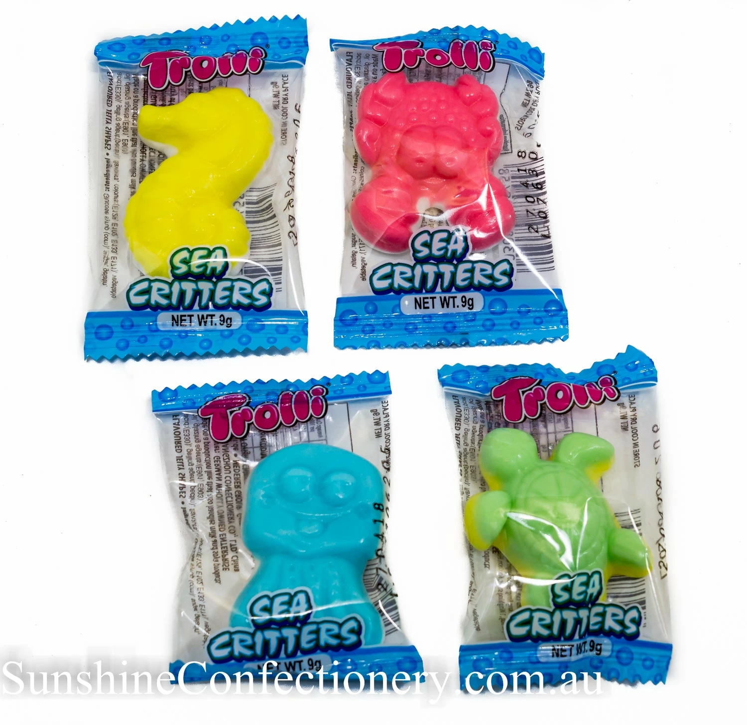 Ingredients: Glucose syrup(corn or wheat), sugar, gelatine, humectant (420), gelling agent: agar, acid: (330), flavours, vegetable oil, glazing agent (901, 903), colours (129, 133, 102, 110).