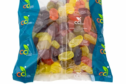 Ingredients: corn syrup, sugar, modified starch, citric acid, flavours, colours – 102, 110, 122, 129, 133. Made in Holland